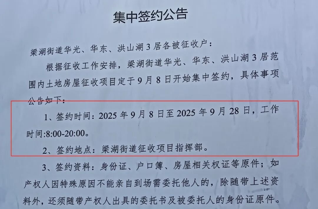 近日,梁湖三村拆迁公告已张贴,现场围观人不少。