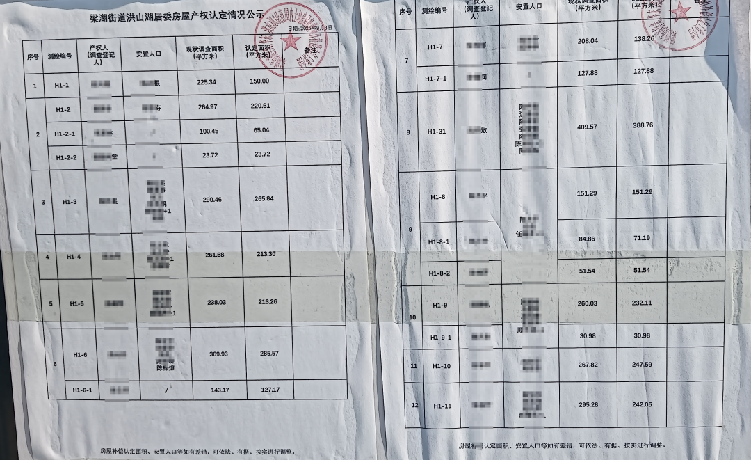 从现场来看,房屋认定面积从20多平到400多平不等。