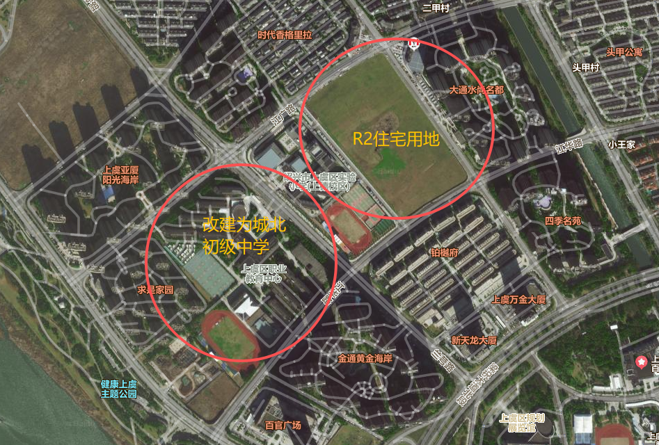 文件中提到,上虞区职教中心调整至铁路东单元异地新建,原职教中心地块规划为城北初级中学。