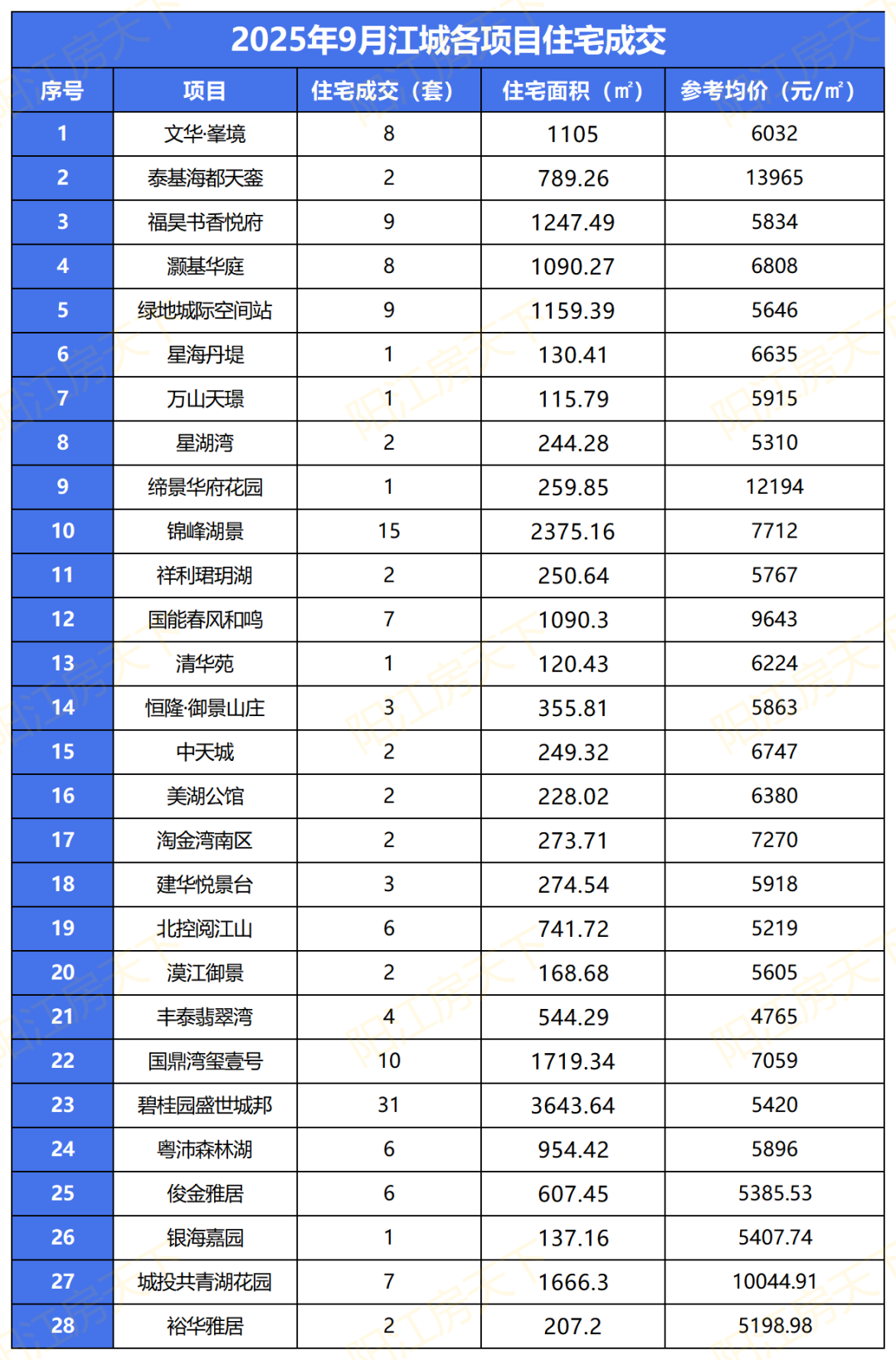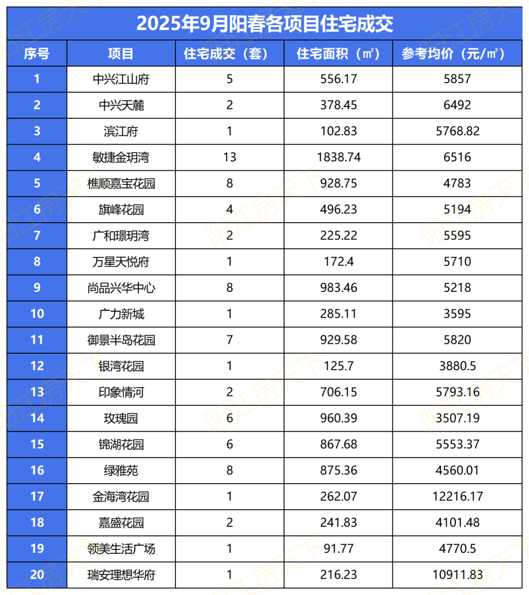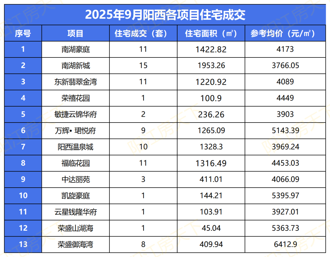 下面我们将通过一些数据,来侧面了解阳江2025年9月楼市表现。
