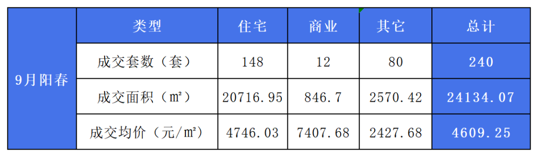 ▲阳江9月新颁发预售证情况