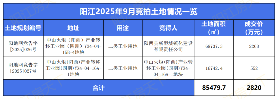 ▲ 阳江9月竞拍土地情况