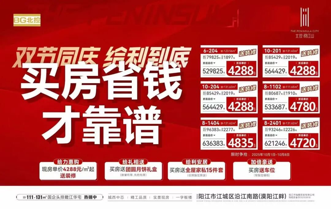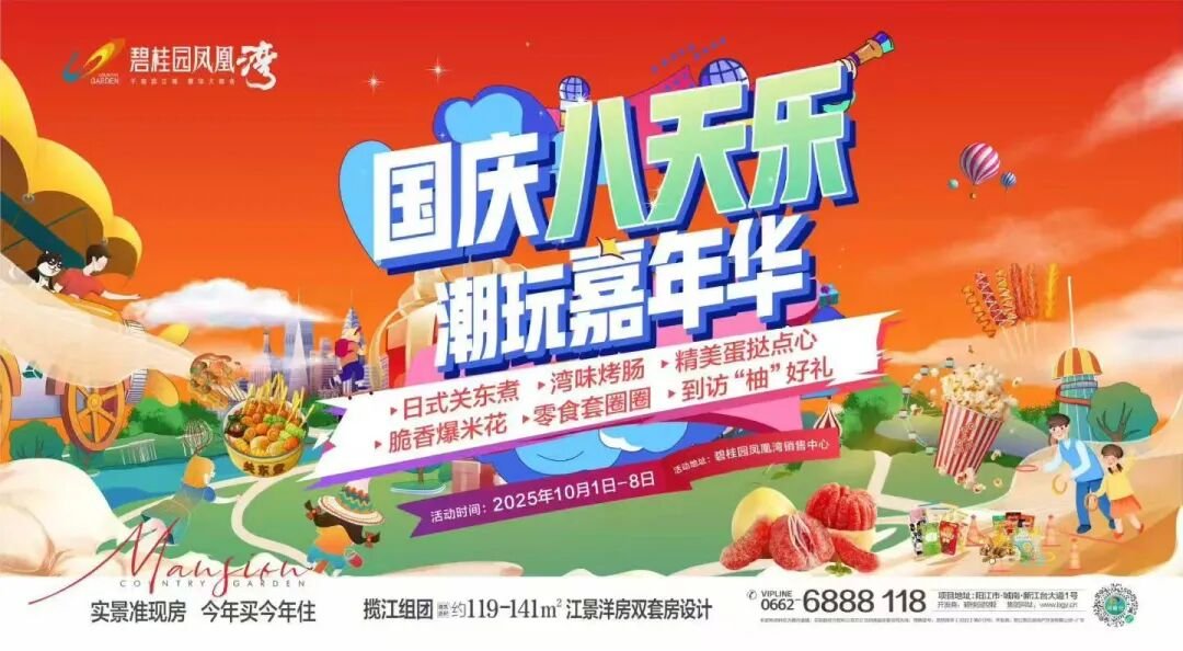 喜提8天长假,阳江房地产行业各项目精心筹备了一系列精彩纷呈的活动,从团购到趣味互动,从特惠盛宴到惊喜暖场,承包你整个假期的快乐!