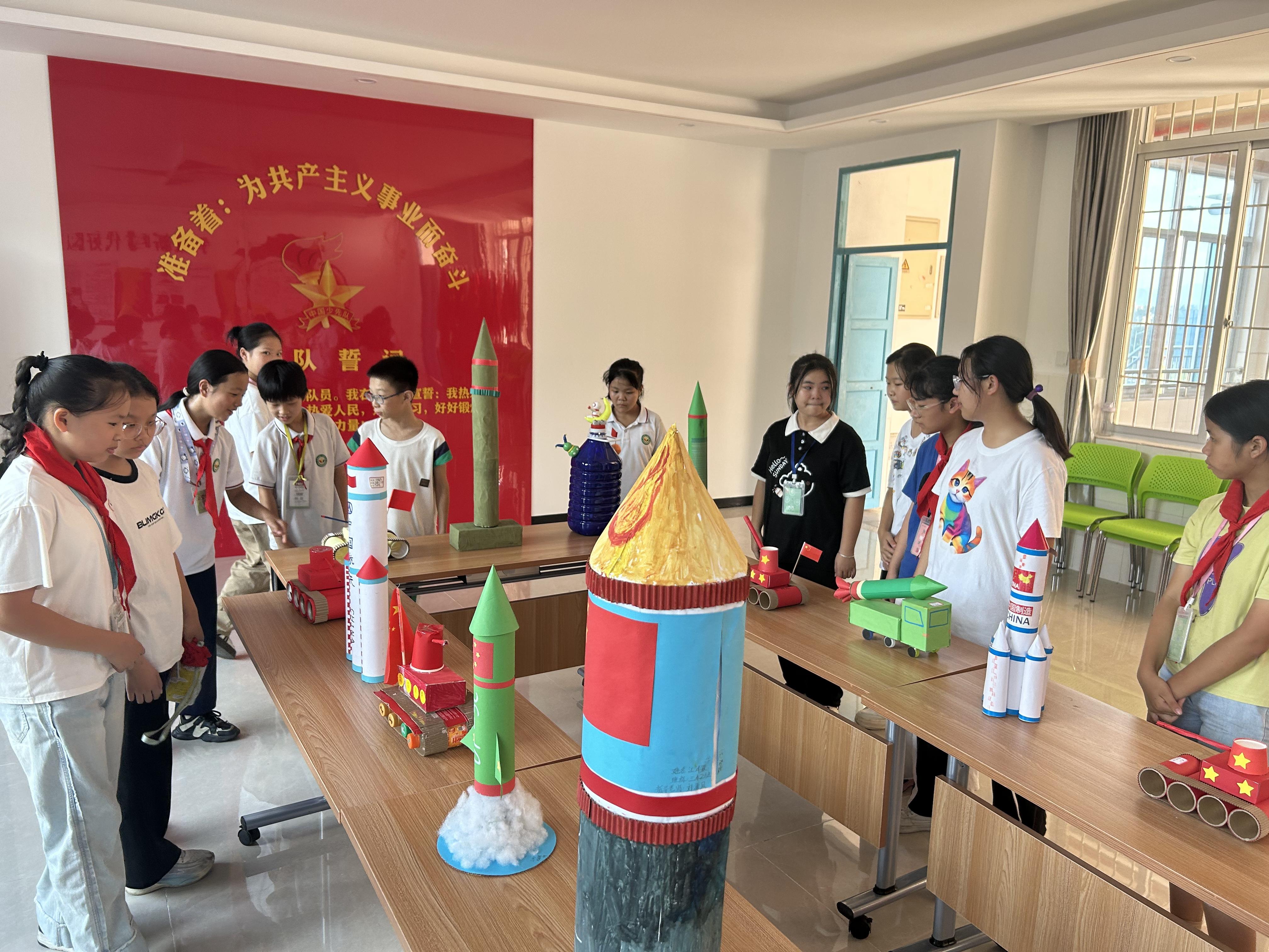 活动以“奇思妙想”家庭实验室开篇,五六年级学生用家中材料完成乳化实验等项目,以视频记录过程;全校开展“科技之光,照亮未来”主题班会,围绕航天、人工智能等领域,融入爱国主义教育;三至六年级学生参与“铸剑为犁,科技强军”手抄报大赛,用画笔展现军事科技成就;“变废为宝,创意兵工厂”环节中,学生将废旧材料制成军事模型,践行环保理念;“云端筑塔”纸牌挑战赛则让三四年级学生协作搭建高塔,学习结构原理。