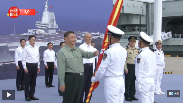 我国第一艘电磁弹射型航空母舰福建舰入列授旗仪式5日在海南三亚某军港举行。中共中央总书记、国家主席、中央军委主席习近平出席入列授旗仪式并登舰视察。