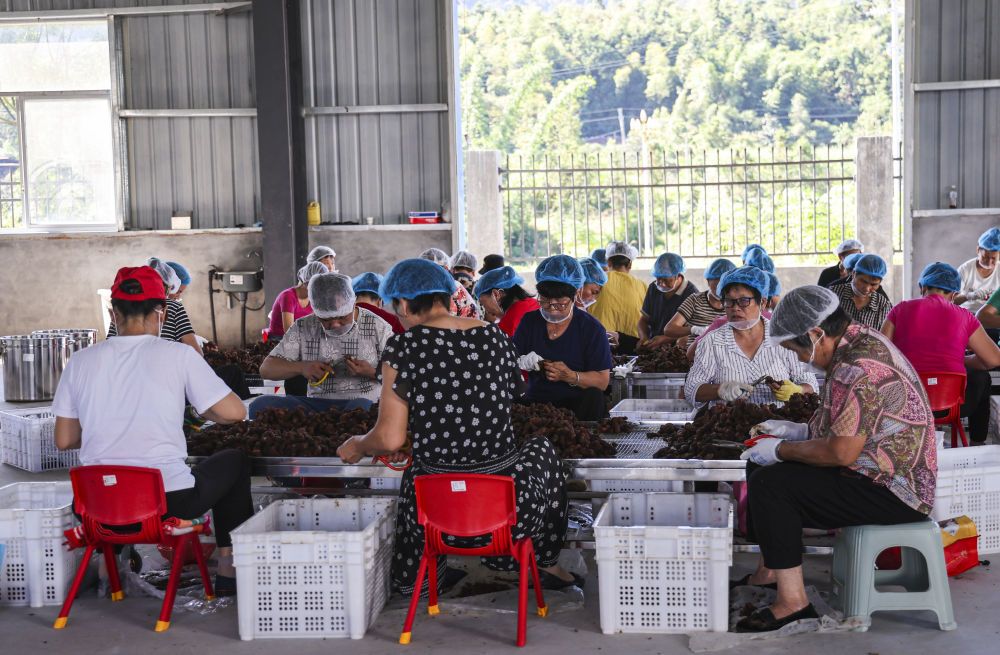 2025年9月17日,常口村村民在黄精加工厂清洗黄精。(董观生 摄)